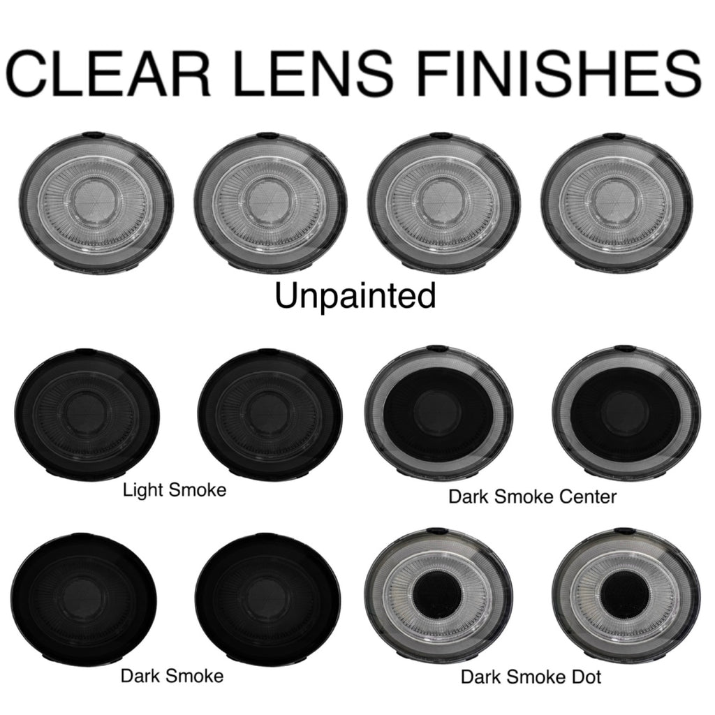 Light and Dark Smoke (dot/center) painted options - These are professionally painted, wet sanded, and UV cleared. No cheap, peeling vinyl or acrylic covers here! Being modified from factory finish, these may not be DOT compliant. These painted sets offer a professional, permanent finish that will last the test of time, with a bit of extra shine in their clear coat. Painted sets typically experience a 2-4 week delay to have the desired finish painted before shipping.